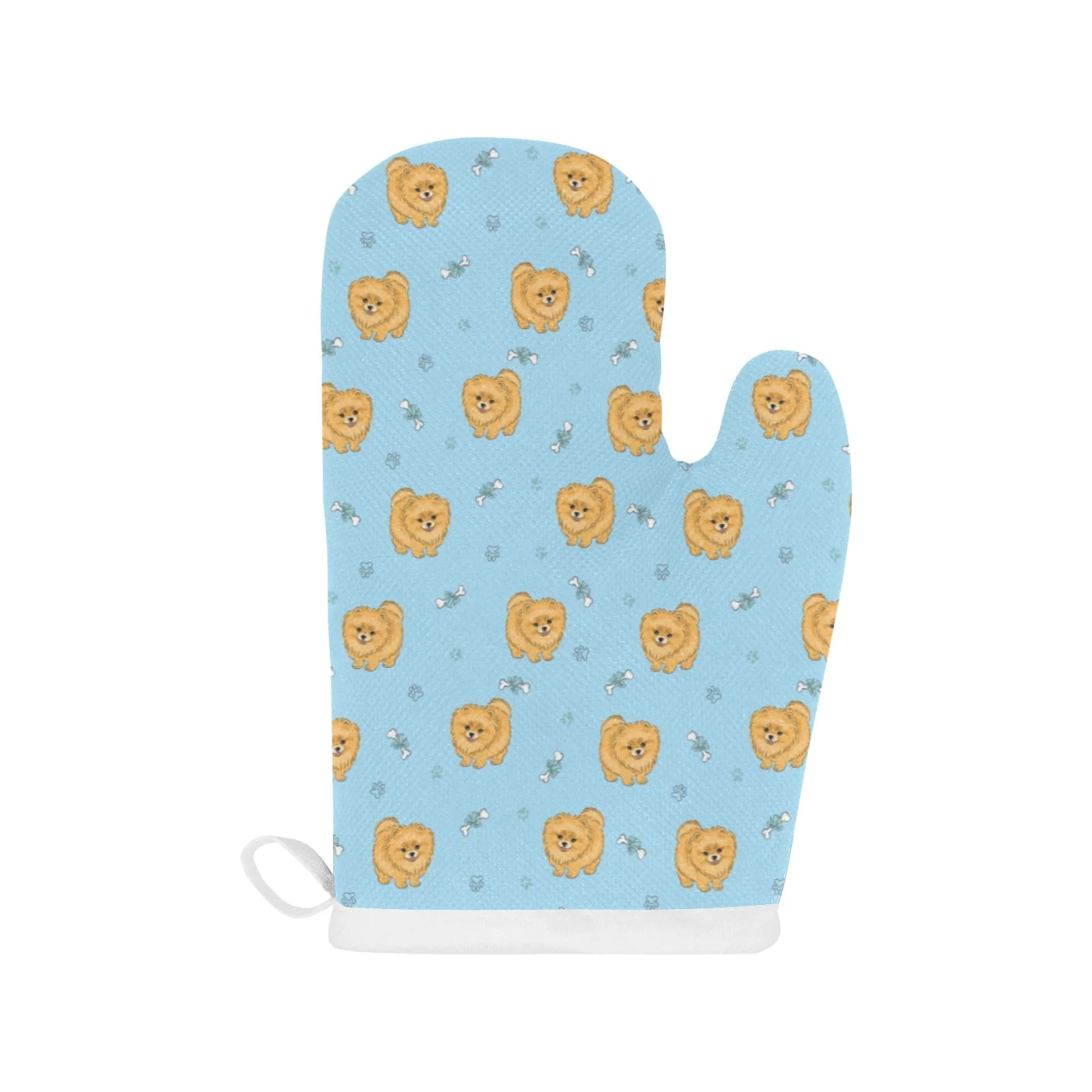 Brown Cute Pomeranian Blue Blackground Heat Resistant Oven Mitts Pot Holders Set