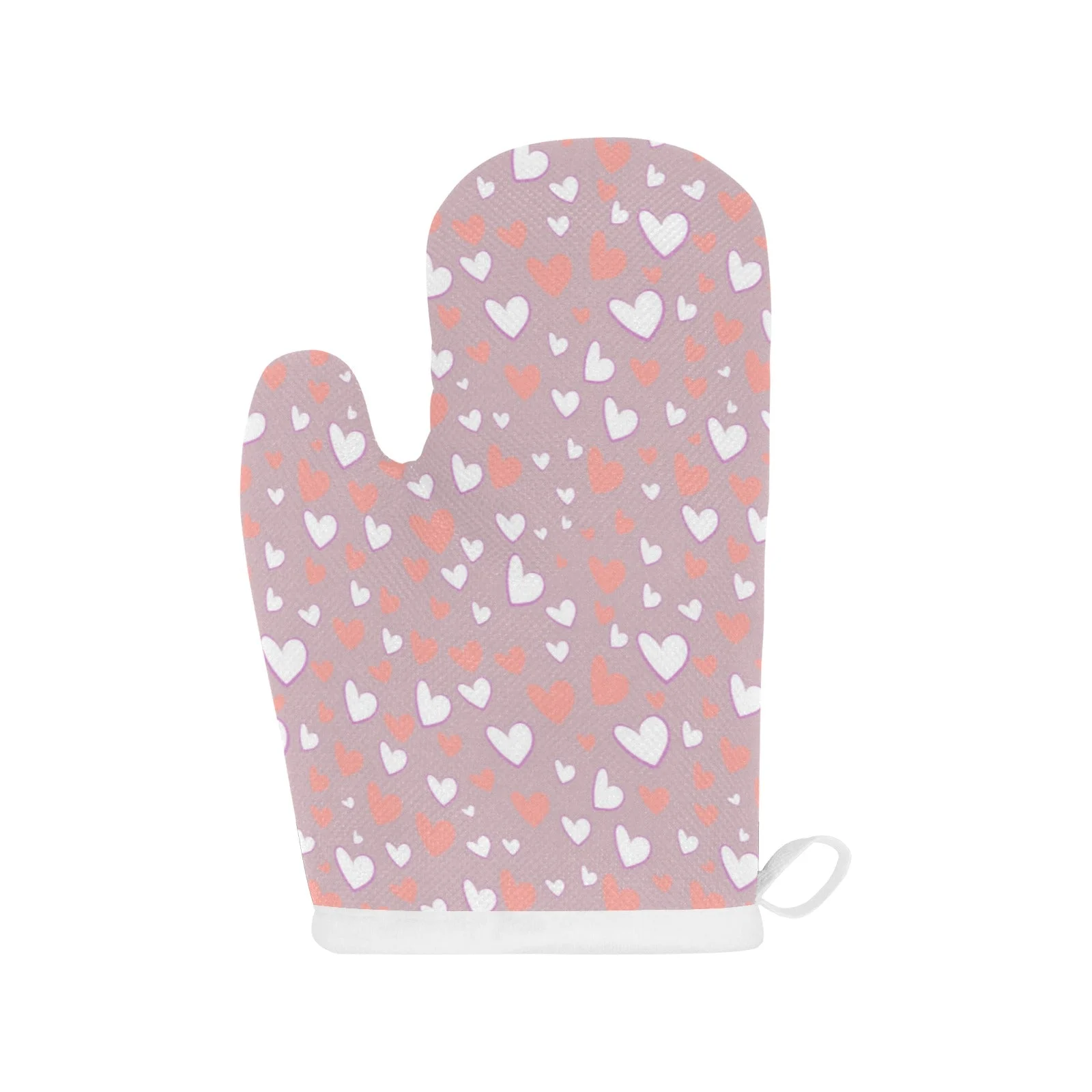 Coral White Heart Pattern Heat Resistant Oven Mitts Pot Holders Set
