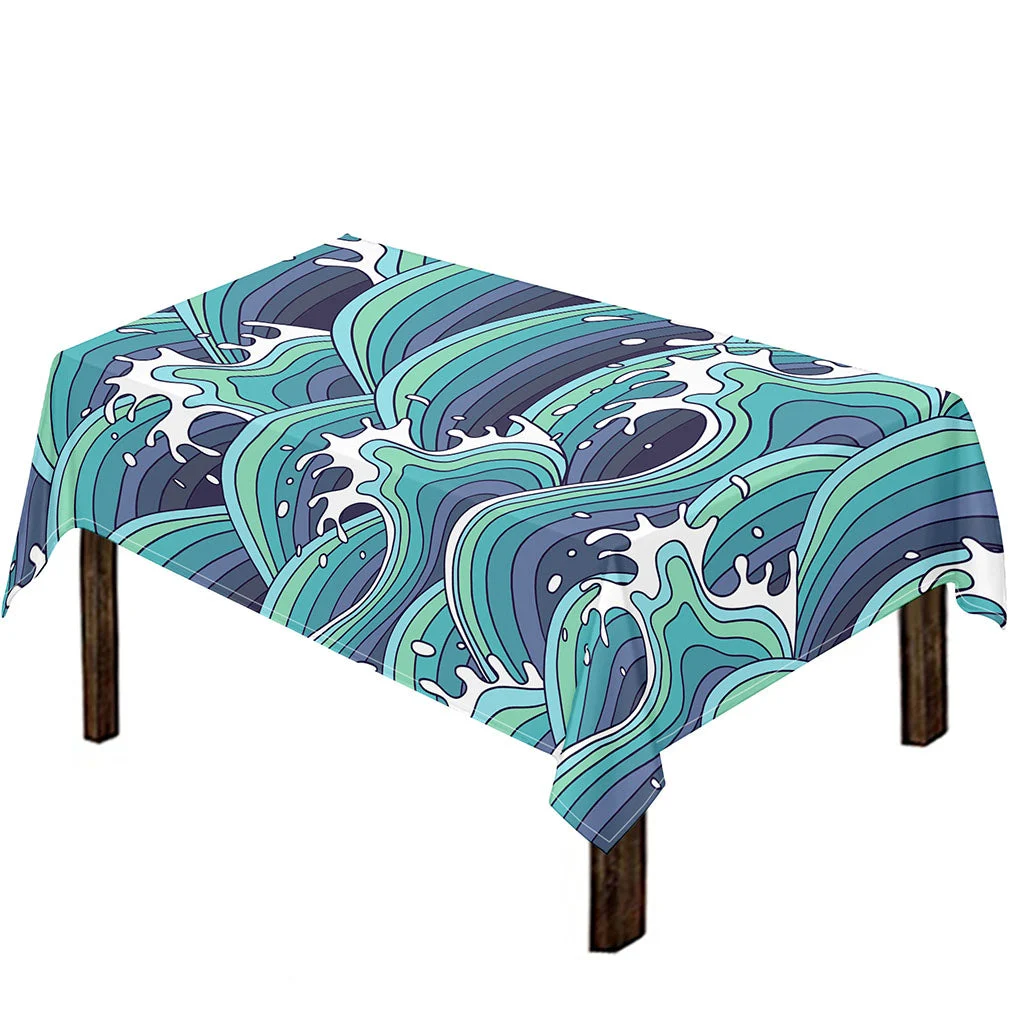 Sea Wave Surfing Pattern Print Tablecloth Kitchen Home Decor