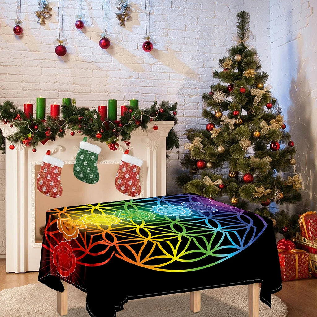 Seven Chakras Flower Of Life Print Tablecloth Kitchen Home Decor