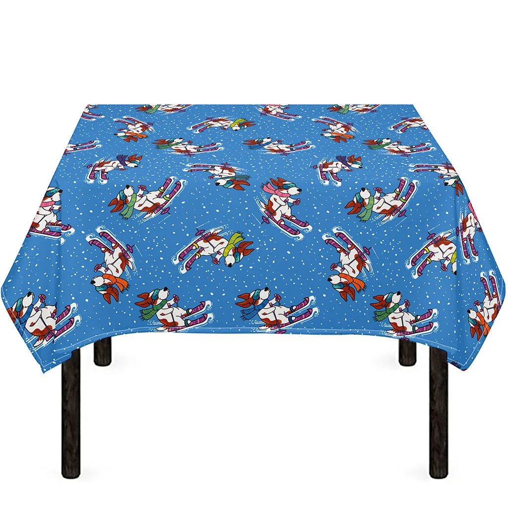 Skiing Dog Pattern Print Tablecloth Kitchen Home Decor