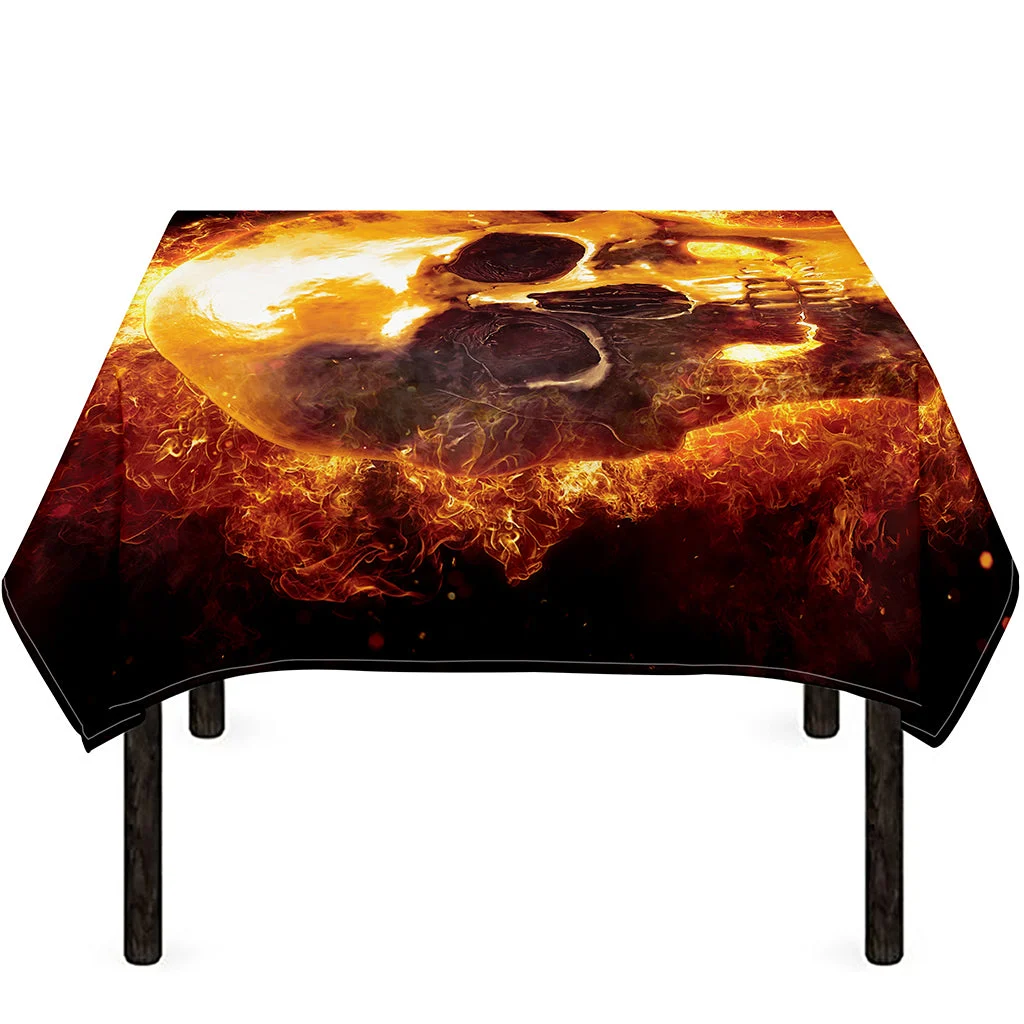 Skull In Flames Print Tablecloth Kitchen Home Decor