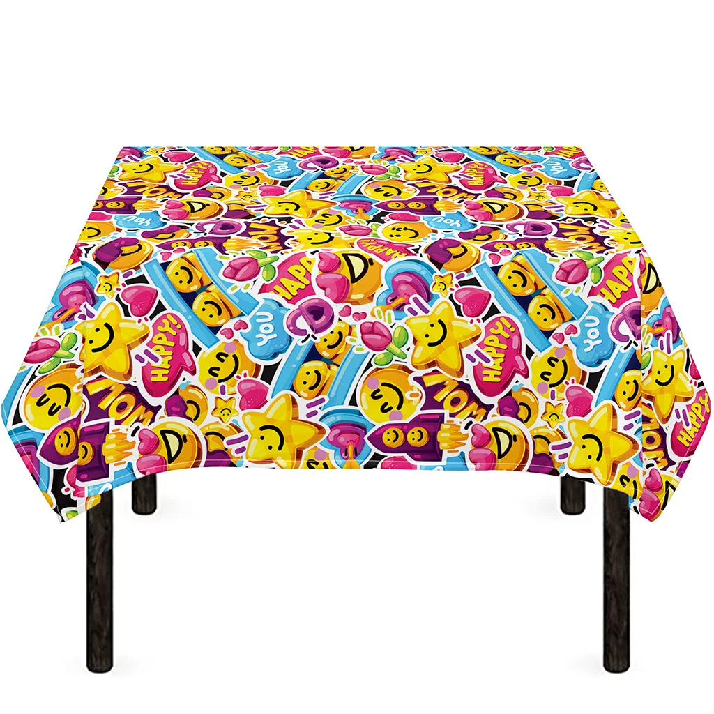 Smiley Faces Emoji Pattern Print Tablecloth Kitchen Home Decor