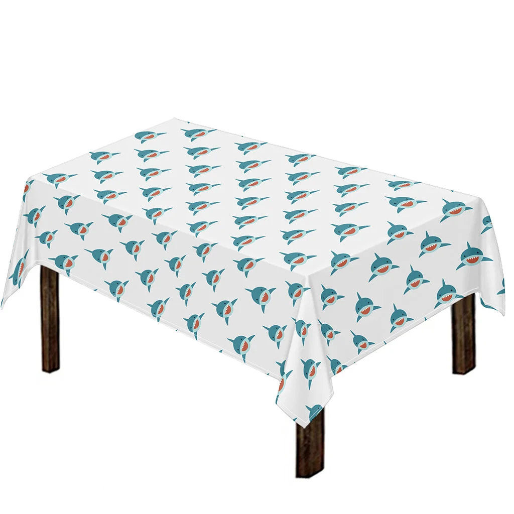Smiley Shark Pattern Print Tablecloth Kitchen Home Decor