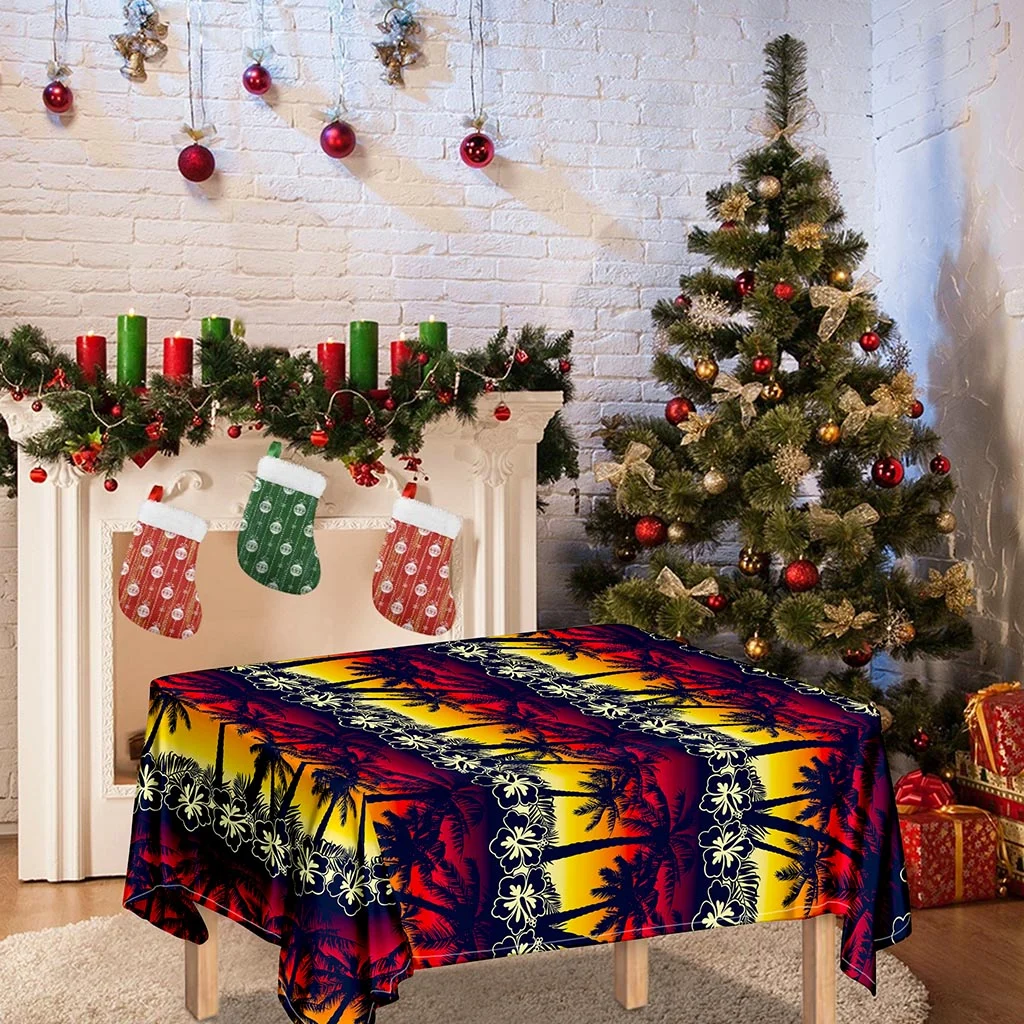 Sunset Hibiscus Palm Tree Pattern Print Tablecloth Kitchen Home Decor