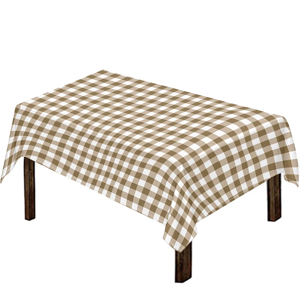 Tan And White Gingham Pattern Print Tablecloth Kitchen Home Decor