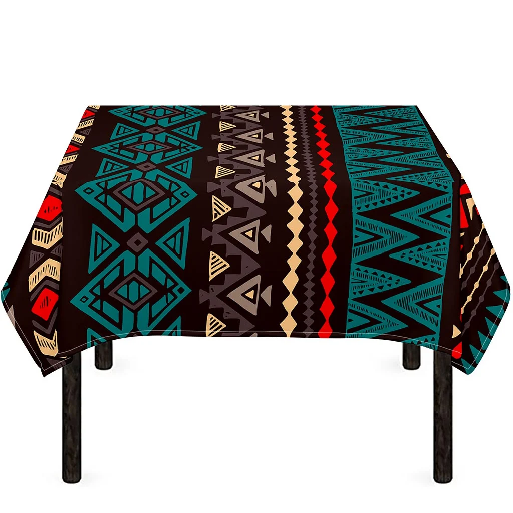 Teal And Brown Aztec Pattern Print Tablecloth Kitchen Home Decor