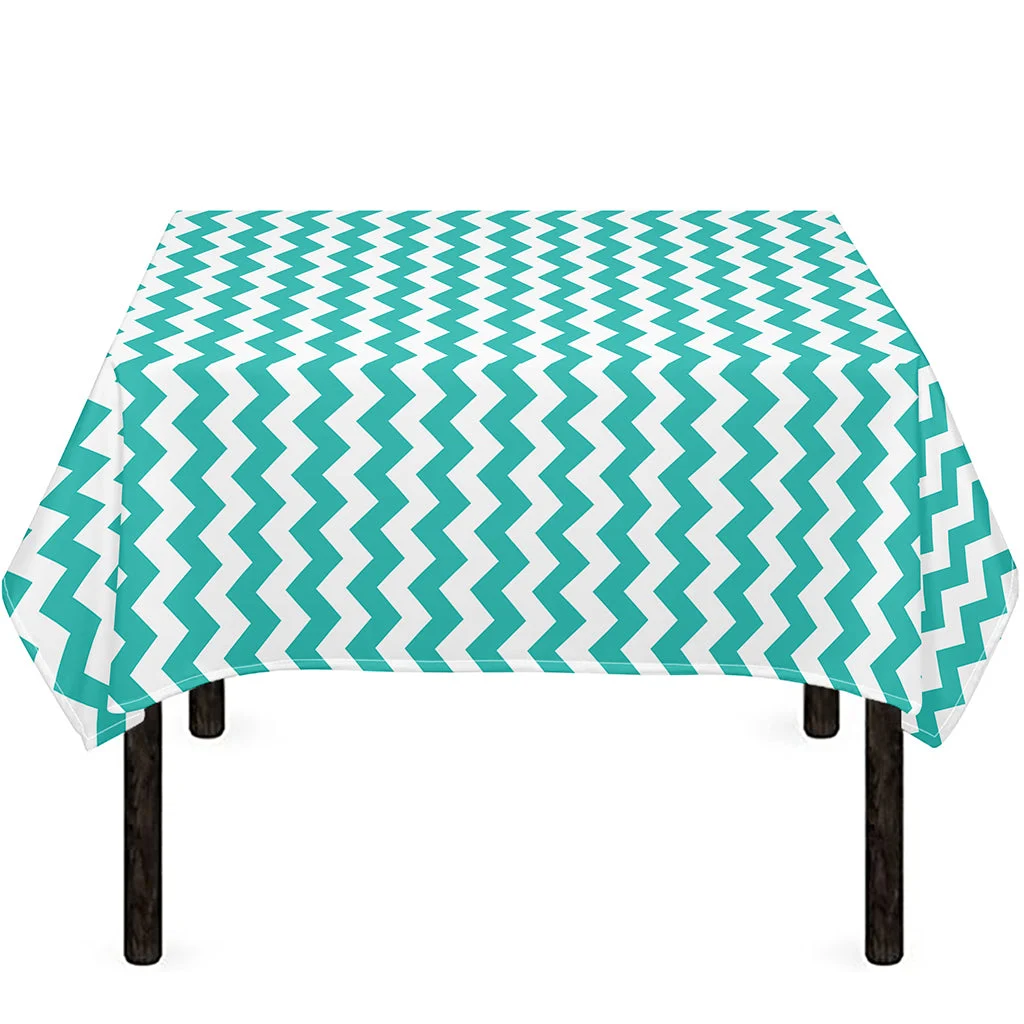 Teal And White Chevron Pattern Print Tablecloth Kitchen Home Decor