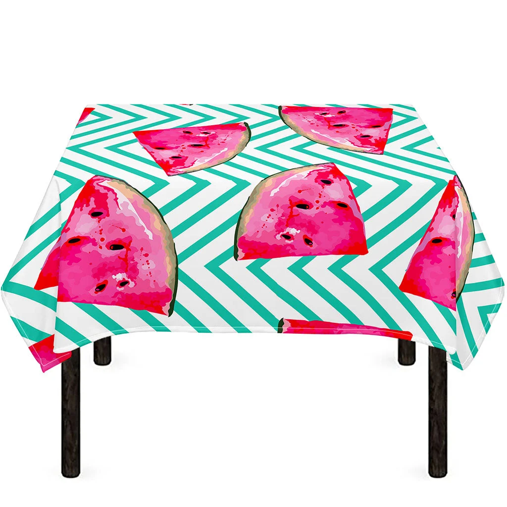 Teal Chevron Watermelon Pattern Print Tablecloth Kitchen Home Decor