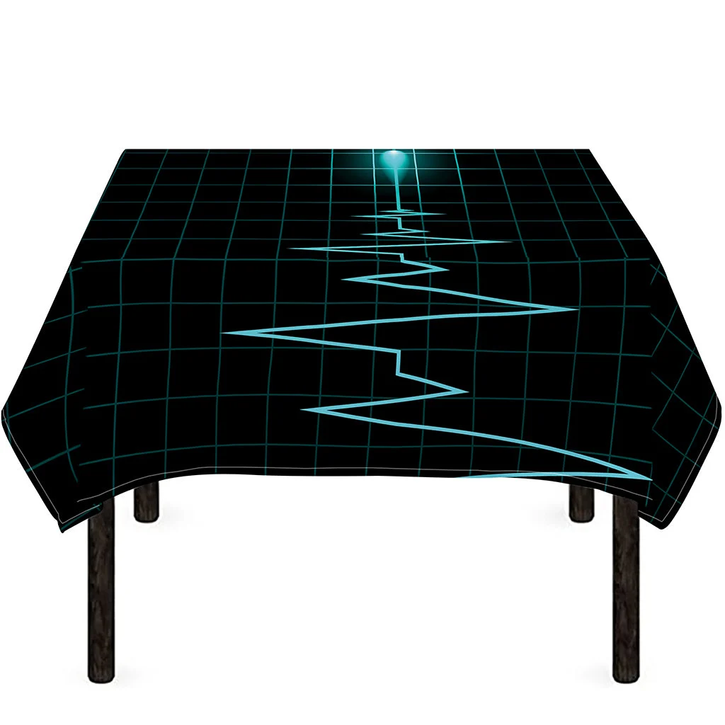 Teal Heartbeat Print Tablecloth Kitchen Home Decor