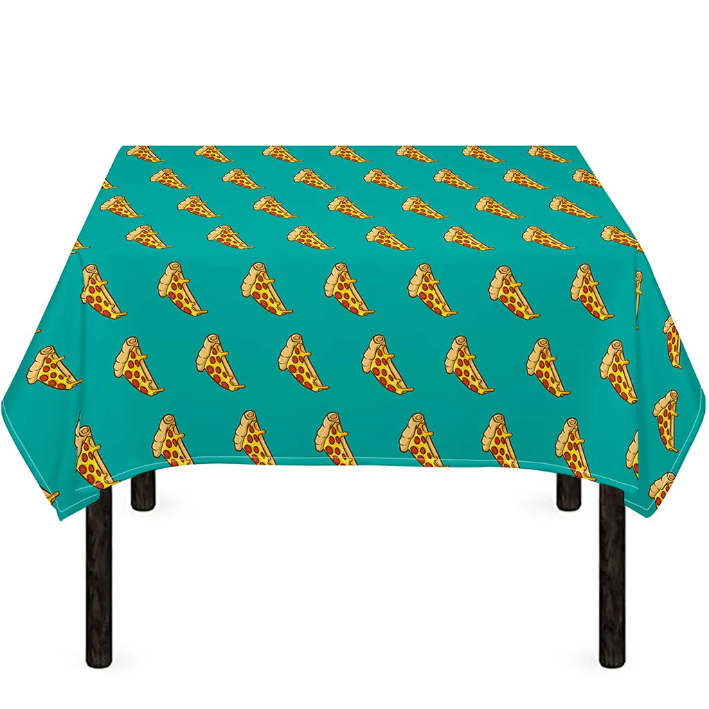 Teal Pizza Pattern Print Tablecloth Kitchen Home Decor