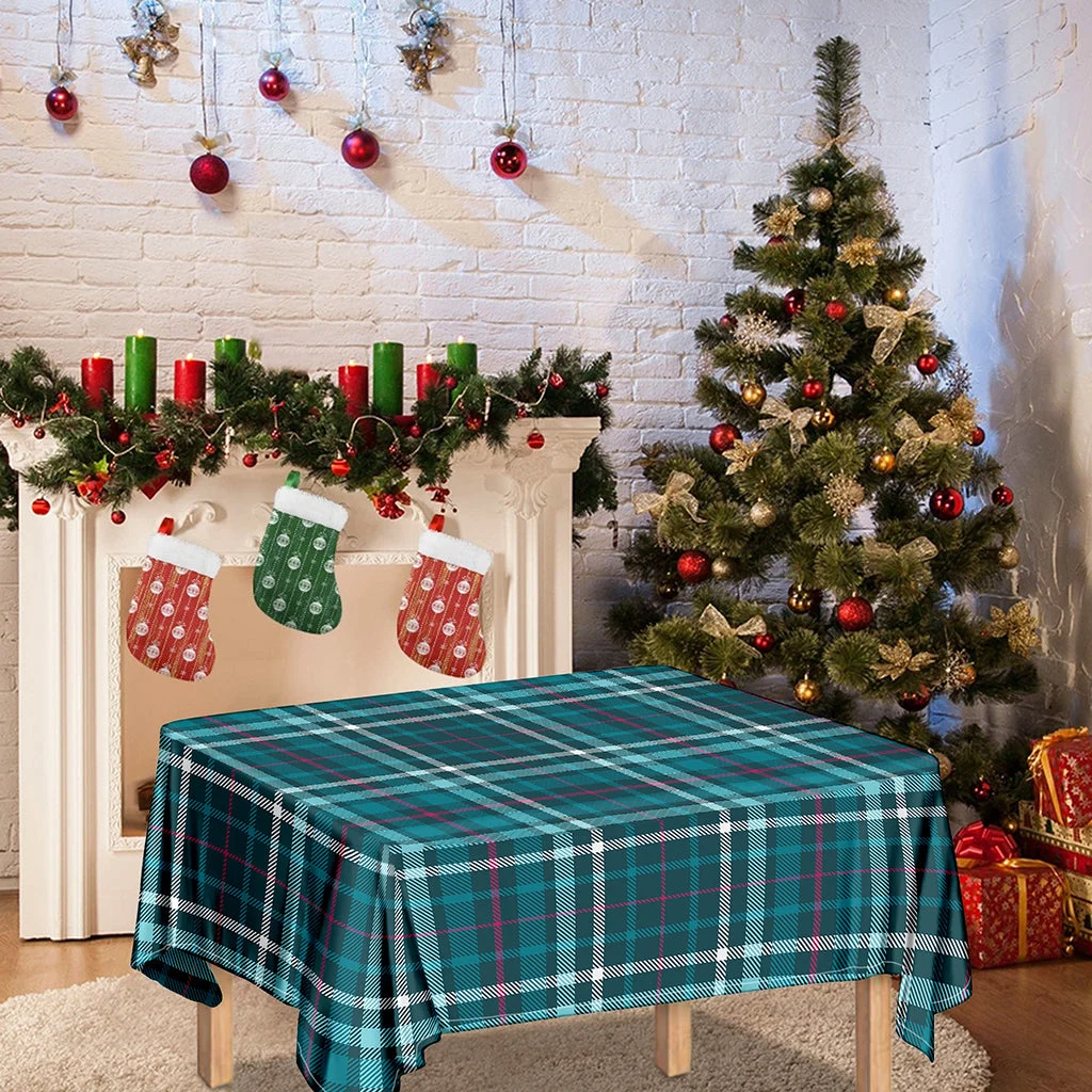 Teal Plaid Pattern Print Tablecloth Kitchen Home Decor