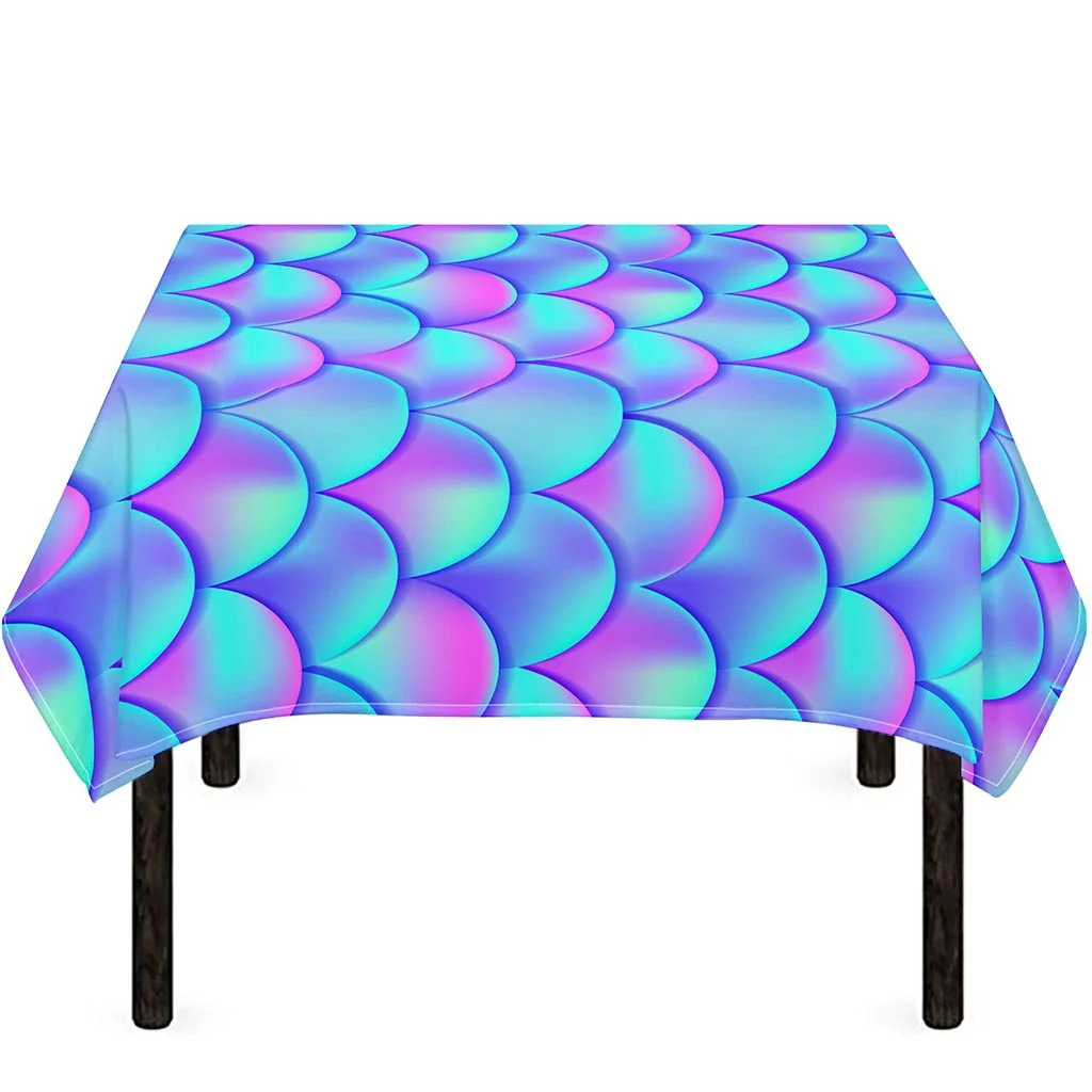 Teal Purple Mermaid Scales Pattern Print Tablecloth Kitchen Home Decor