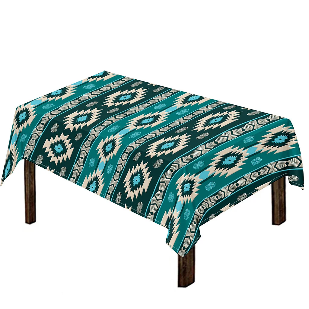 Teal Southwestern Navajo Pattern Print Tablecloth Kitchen Home Decor