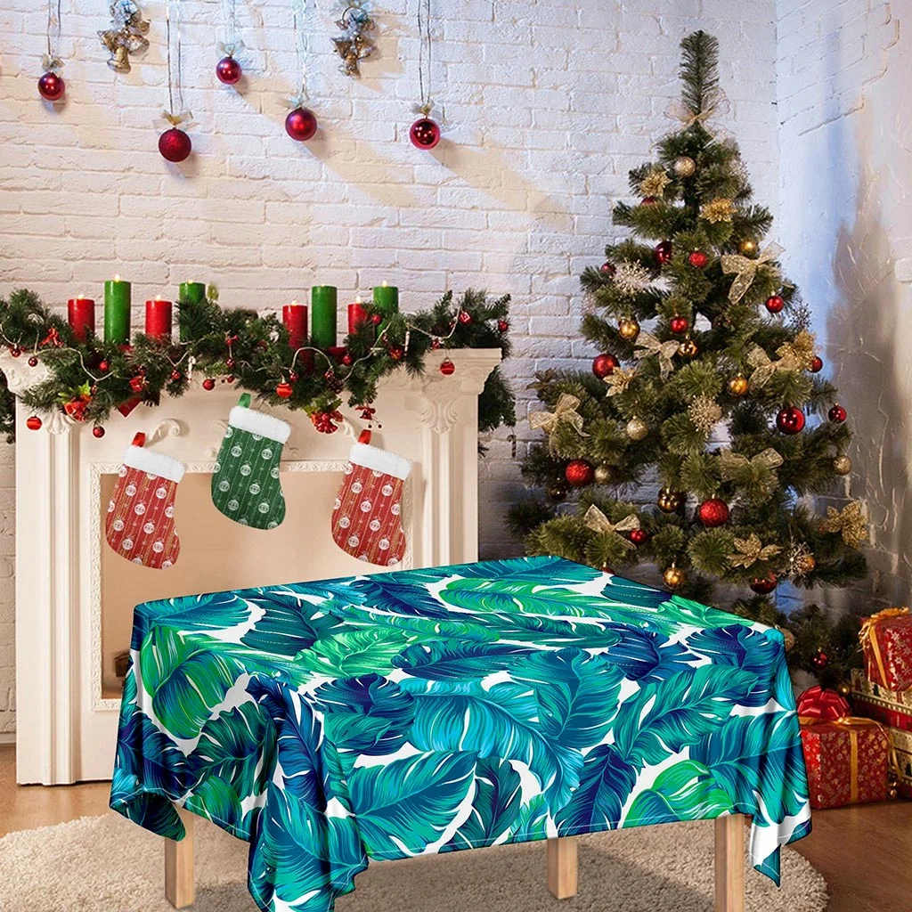 Teal Tropical Leaf Pattern Print Tablecloth Kitchen Home Decor
