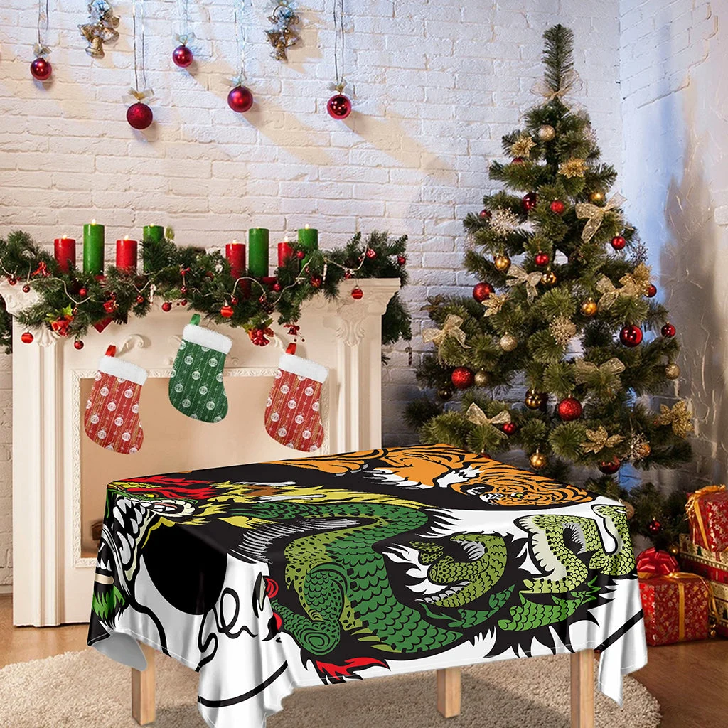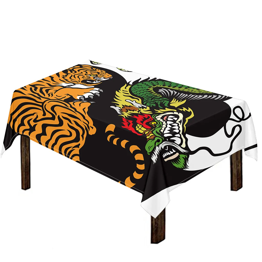 Tiger And Dragon Yin Yang Print Tablecloth Kitchen Home Decor
