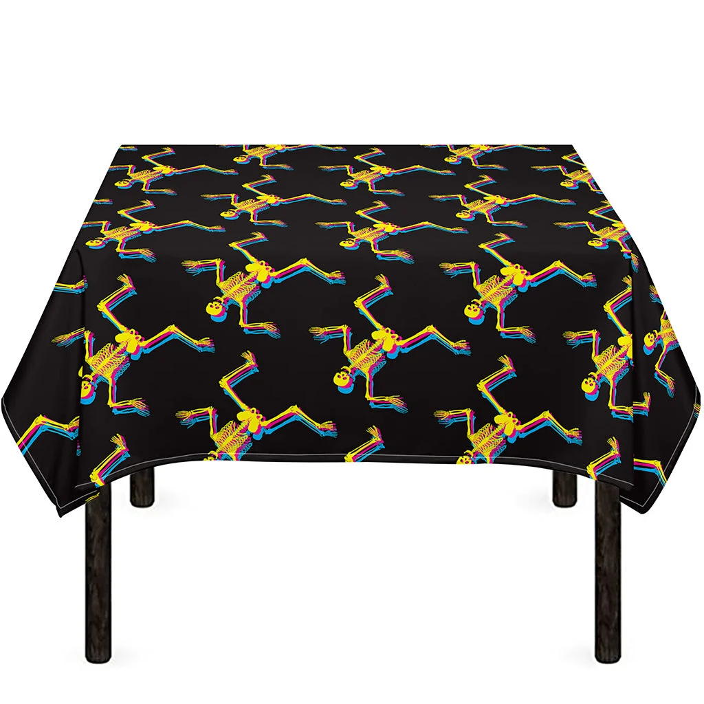 Trippy Dancing Skeleton Pattern Print Tablecloth Kitchen Home Decor
