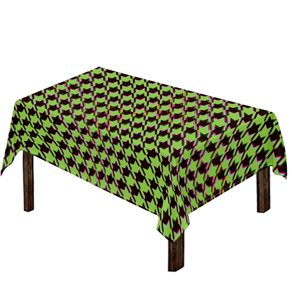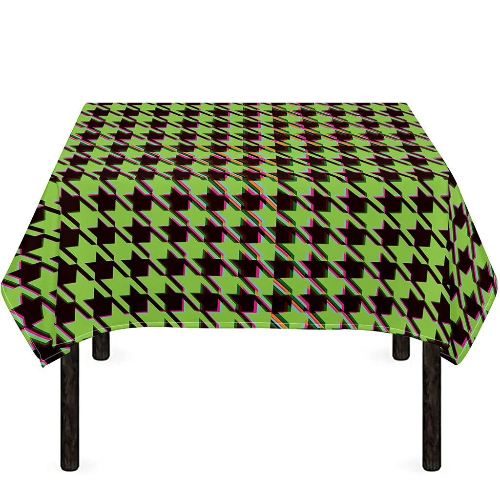 Trippy green Houndstooth Pattern Print Tablecloth Kitchen Home Decor