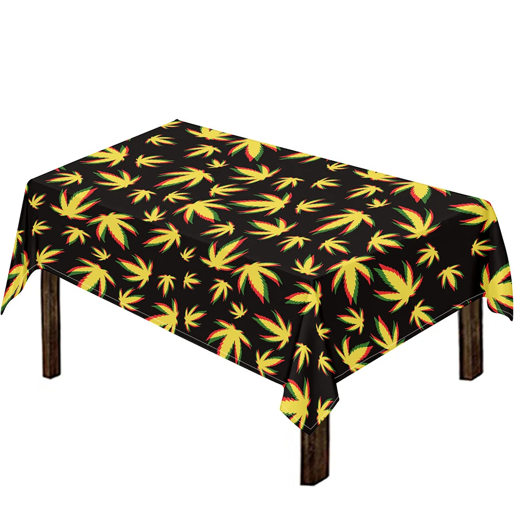 Trippy Weed Leaf Pattern Print Tablecloth Kitchen Home Decor