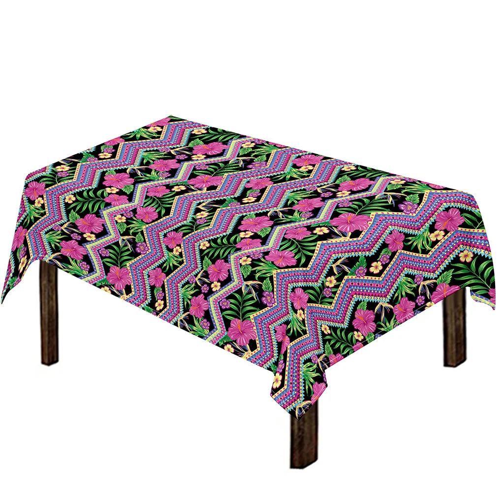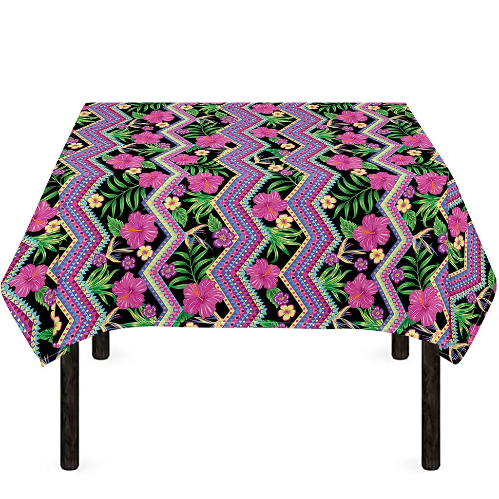 Tropical Hibiscus Flowers Aztec Print Tablecloth Kitchen Home Decor