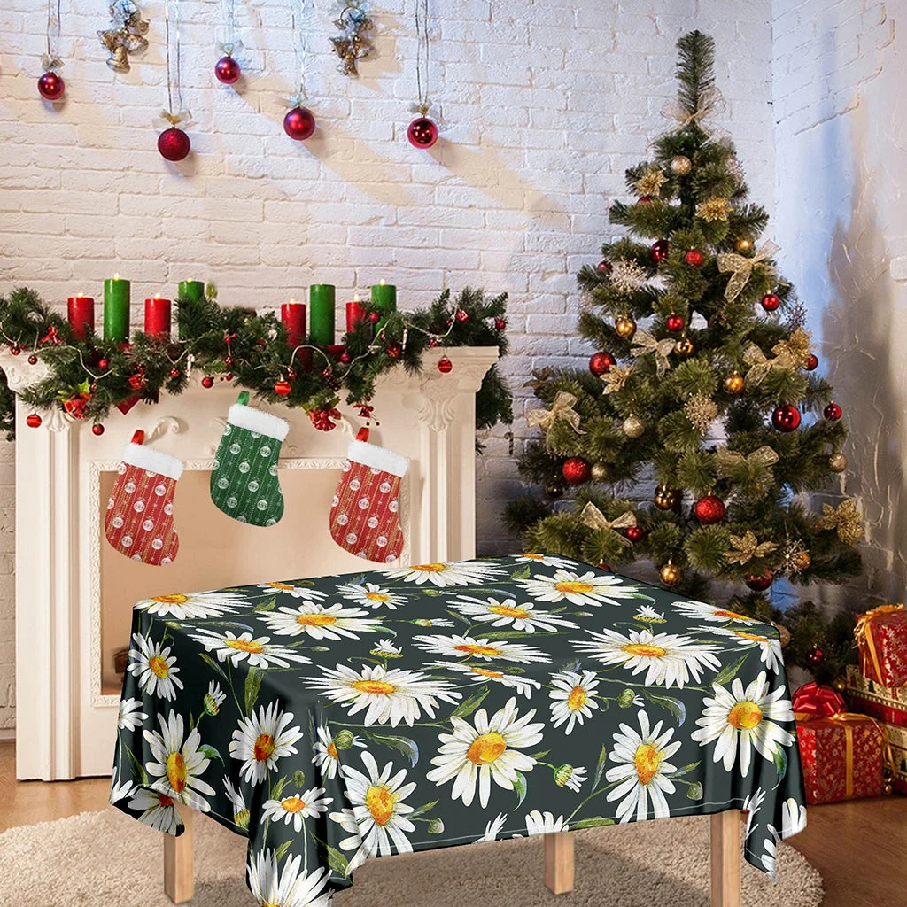 Watercolor Daisy Flower Pattern Print Tablecloth Kitchen Home Decor