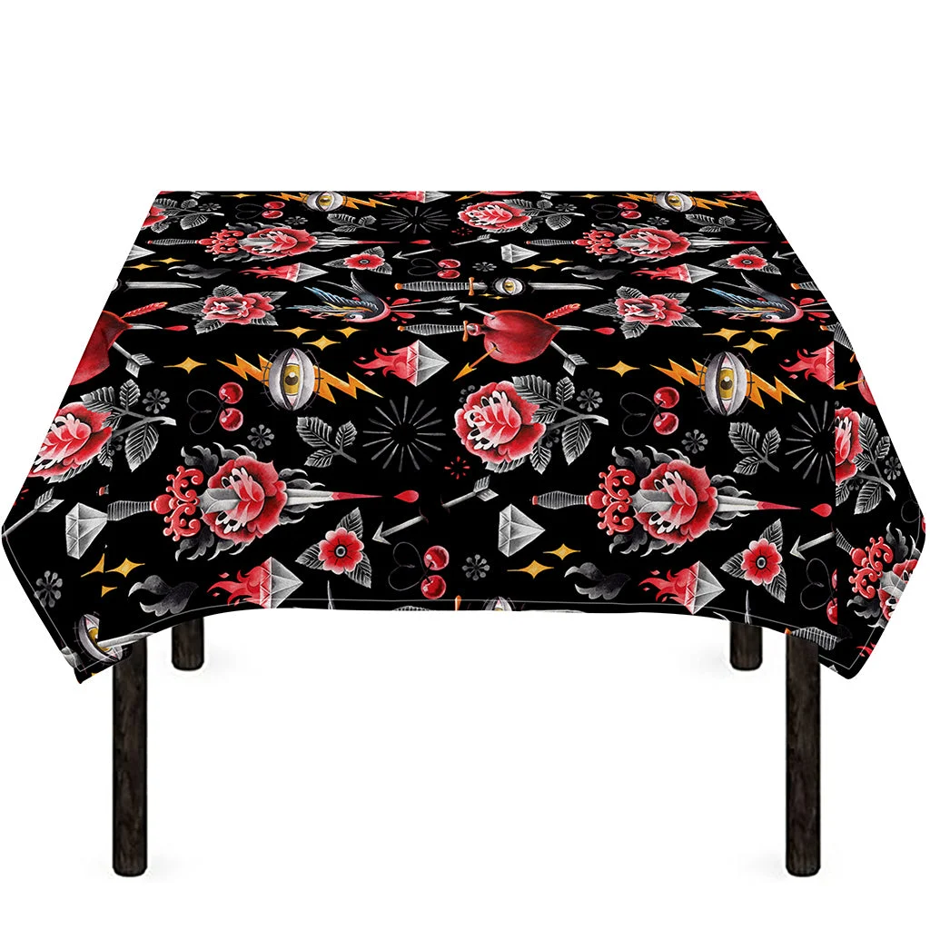 Watercolor Tattoo Print Tablecloth Kitchen Home Decor