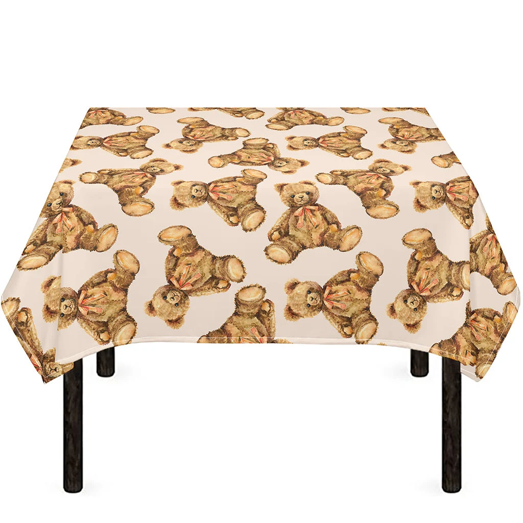 Watercolor Teddy Bear Pattern Print Tablecloth Kitchen Home Decor