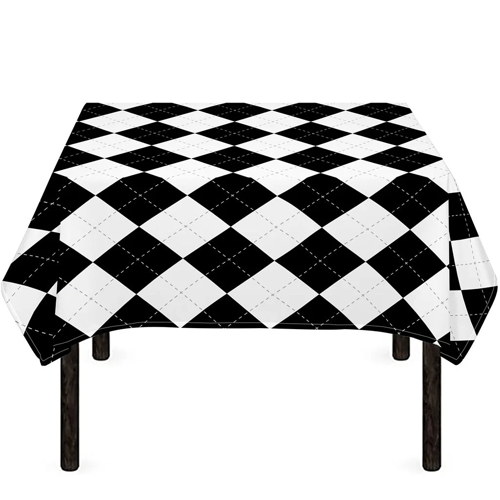 White And Black Argyle Pattern Print Tablecloth Kitchen Home Decor