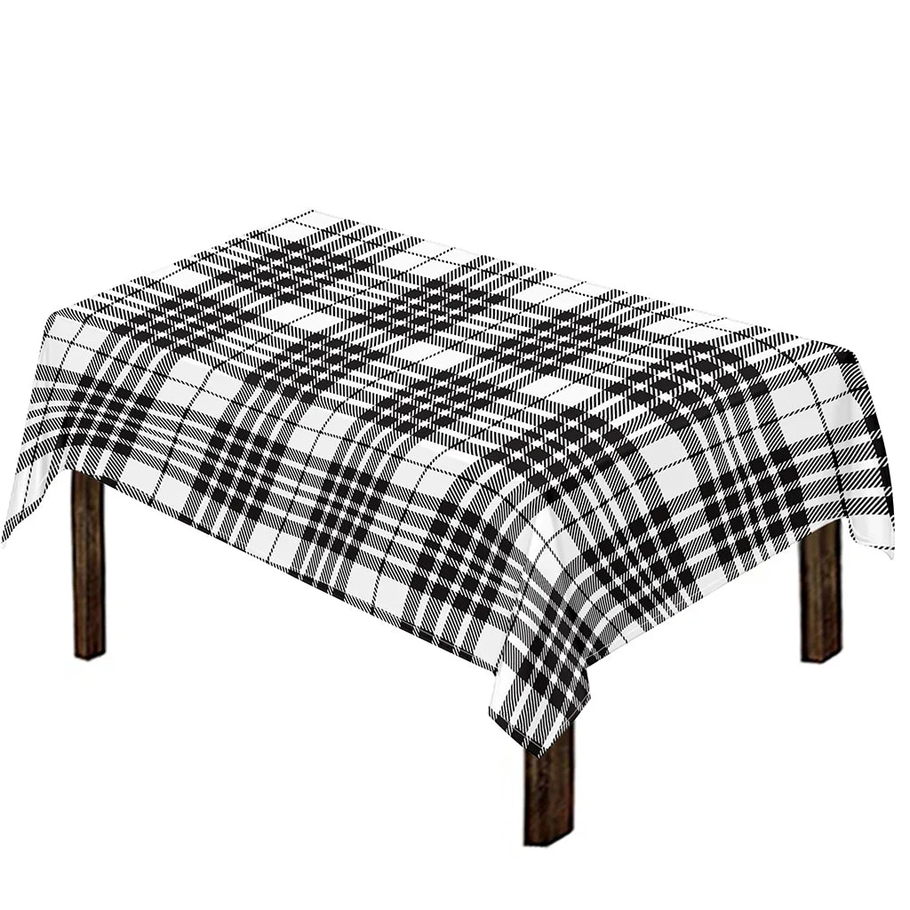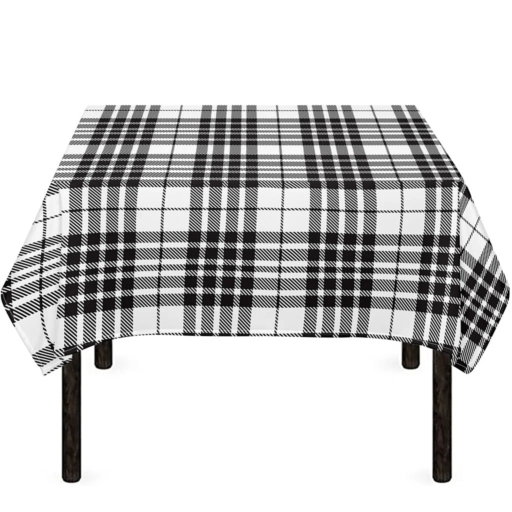 White And Black Border Tartan Print Tablecloth Kitchen Home Decor