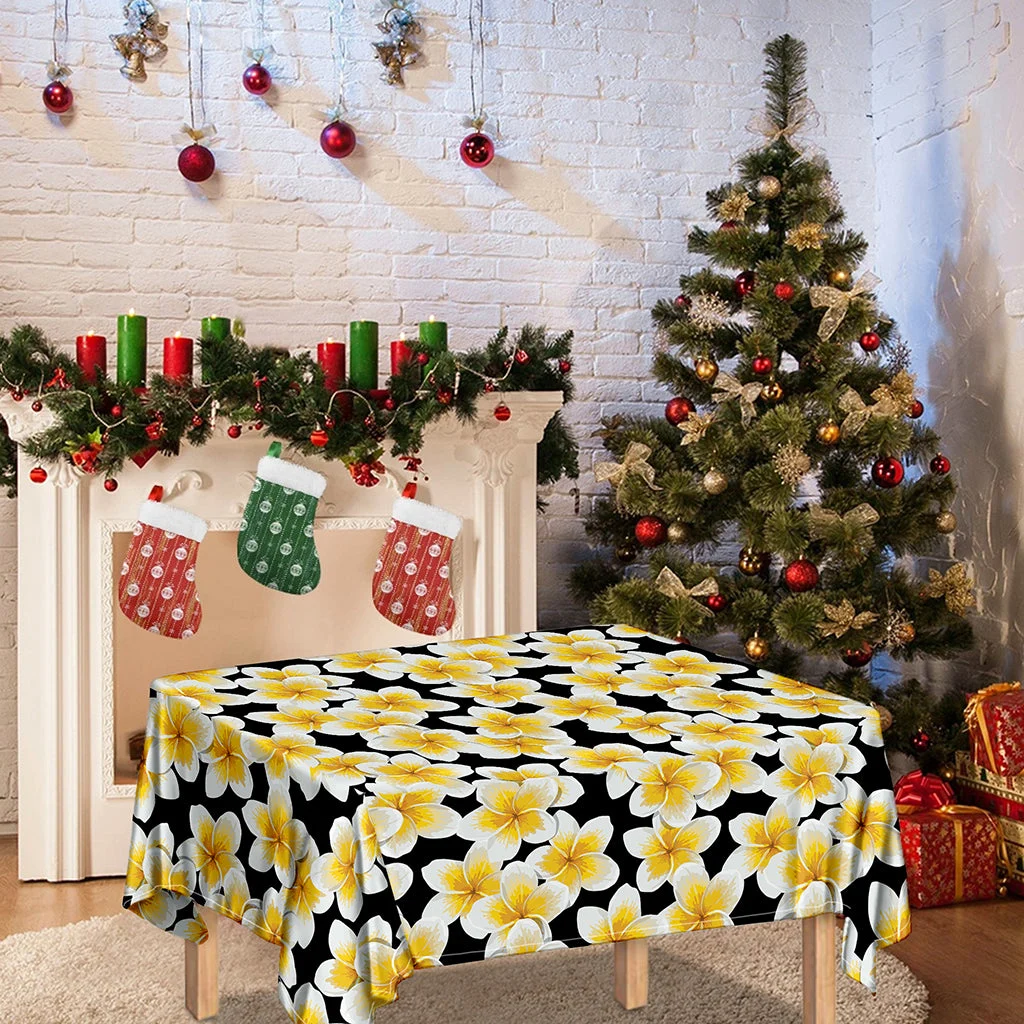 White And Black Frangipani Pattern Print Tablecloth Kitchen Home Decor