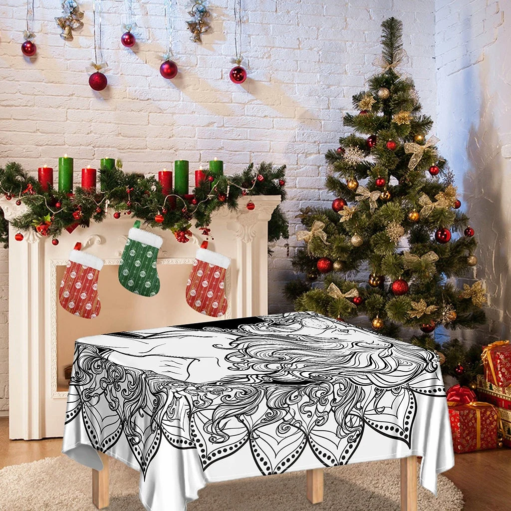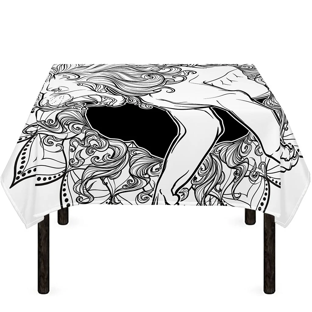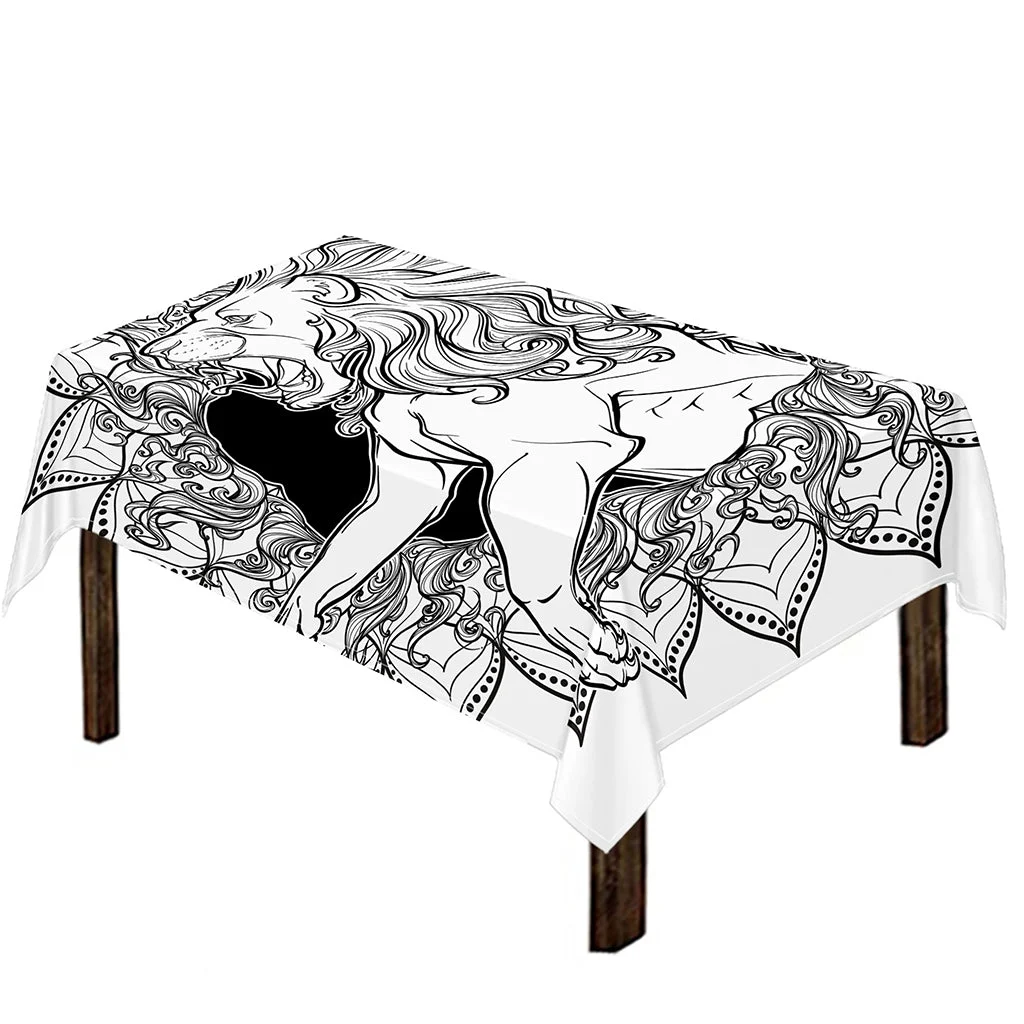 White And Black Leo Sign Print Tablecloth Kitchen Home Decor