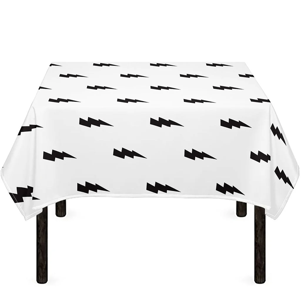 White And Black Lightning Pattern Print Tablecloth Kitchen Home Decor