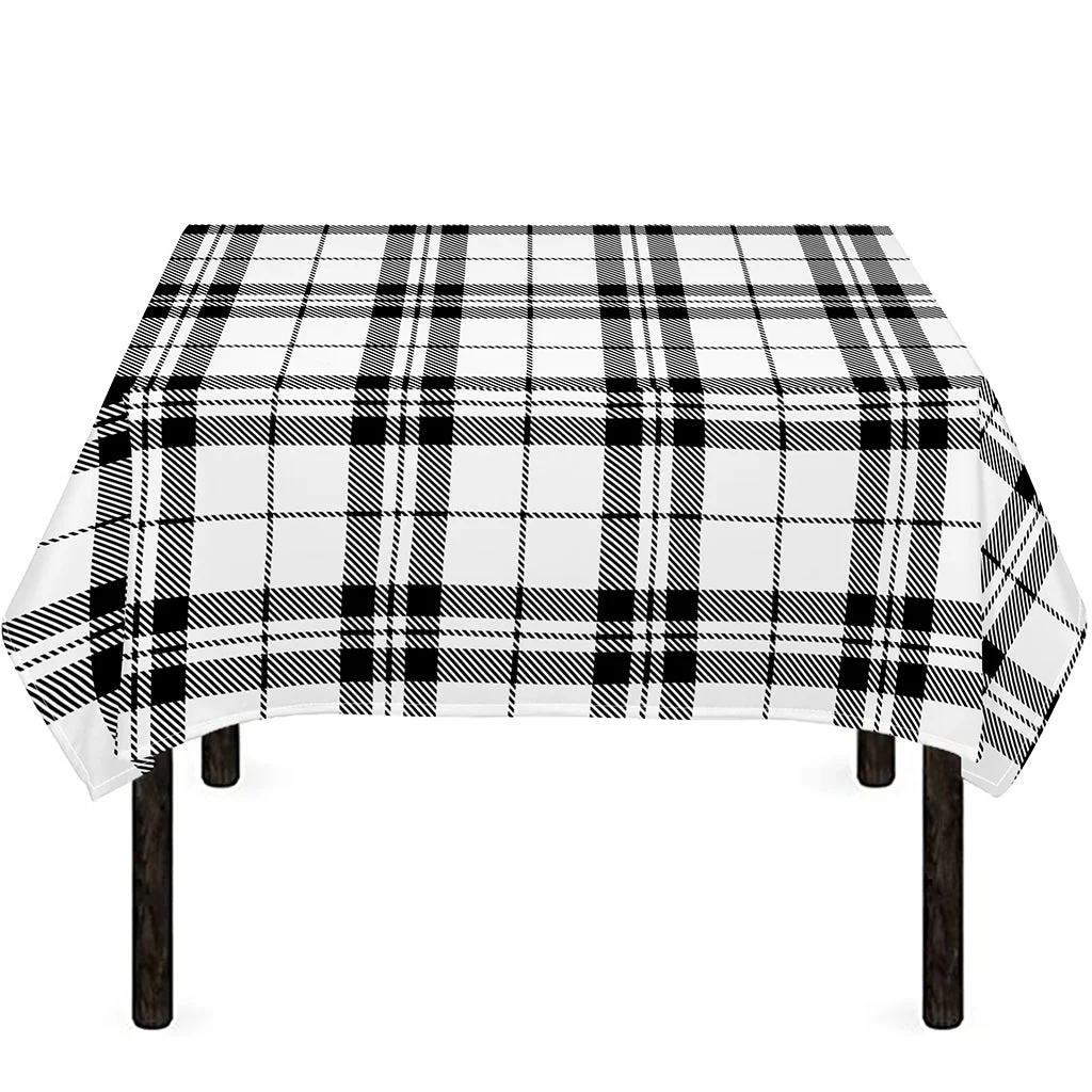 White And Black Tartan Pattern Print Tablecloth Kitchen Home Decor