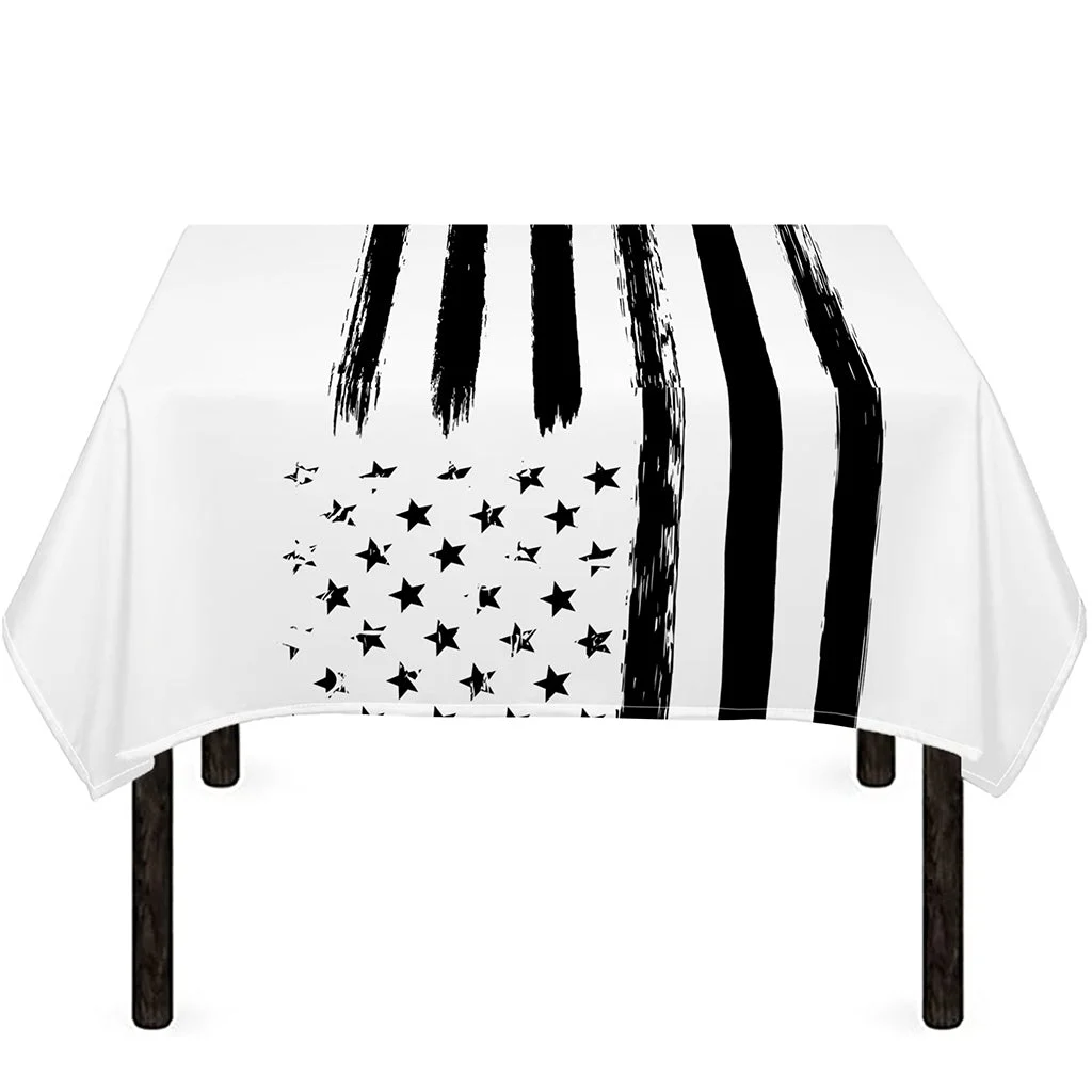 White And Black USA Flag Print Tablecloth Kitchen Home Decor