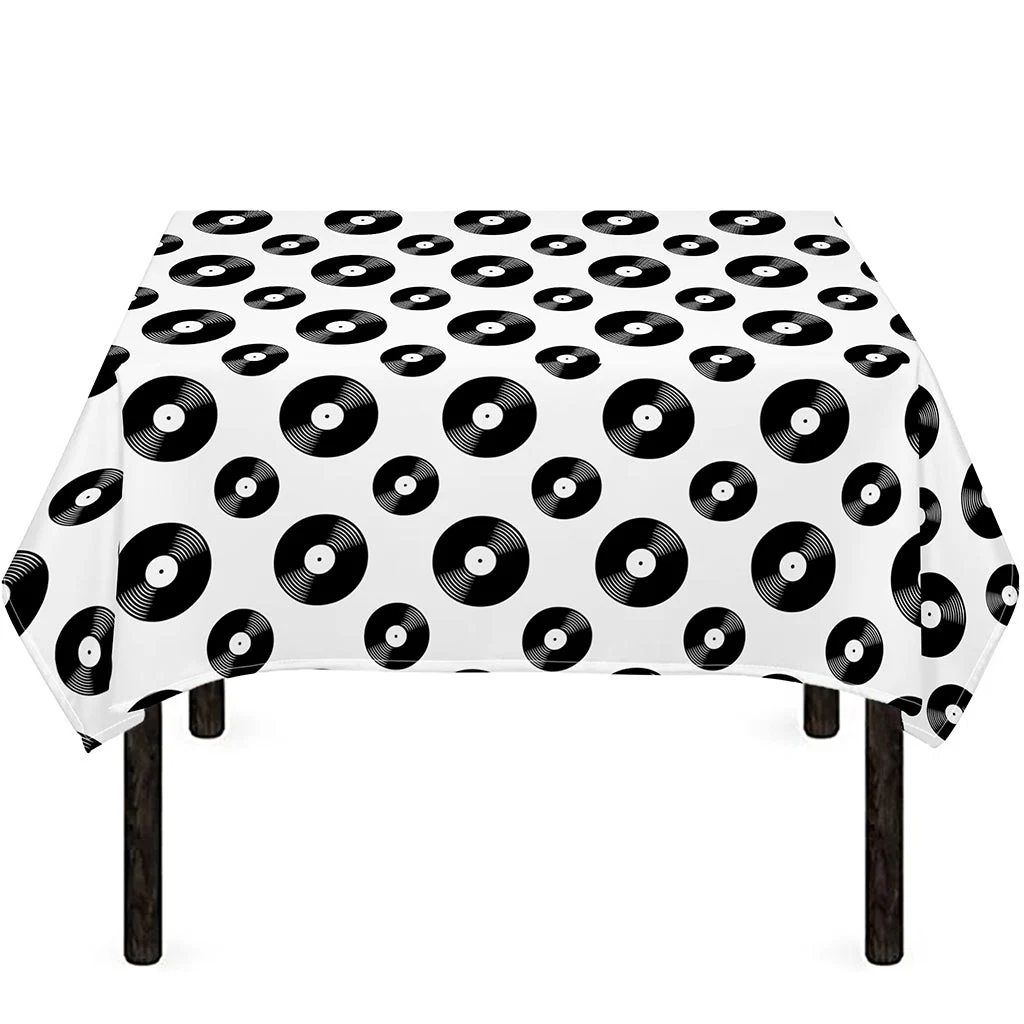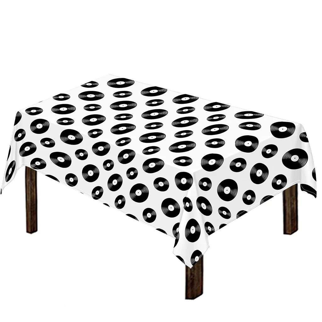 White And Black Vinyl Pattern Print Tablecloth Kitchen Home Decor