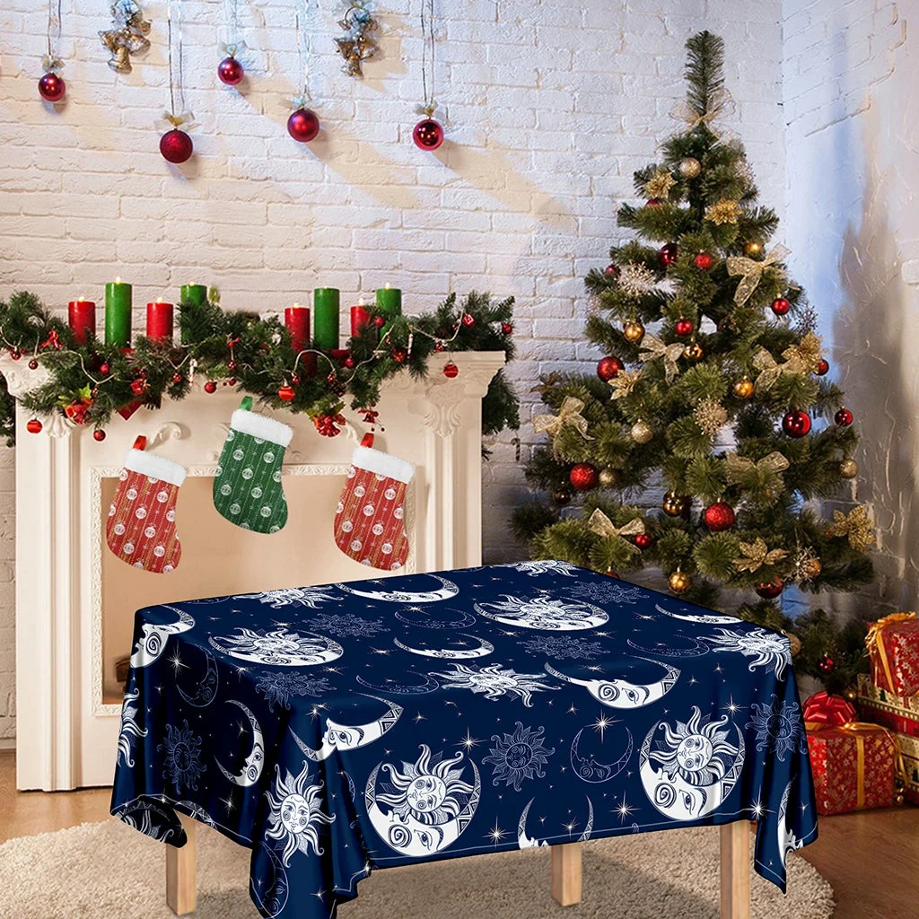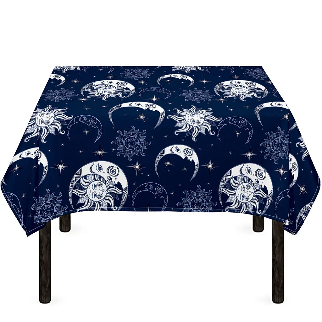 White And Blue Celestial Pattern Print Tablecloth Kitchen Home Decor