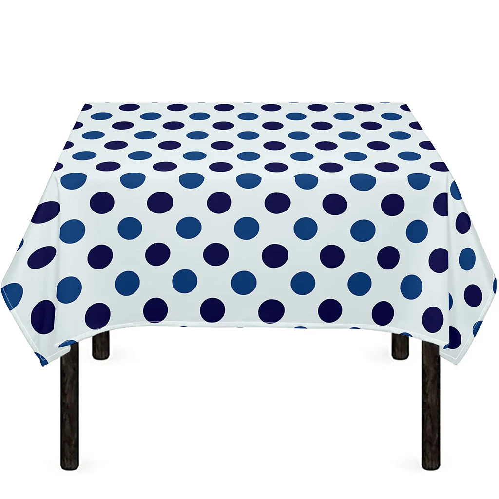 White And Blue Polka Dot Pattern Print Tablecloth Kitchen Home Decor
