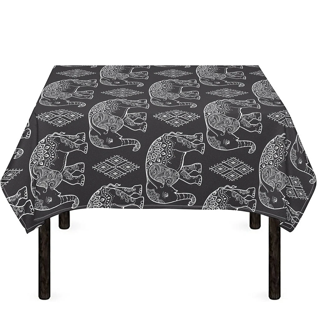 White And Grey Indian Elephant Print Tablecloth Kitchen Home Decor