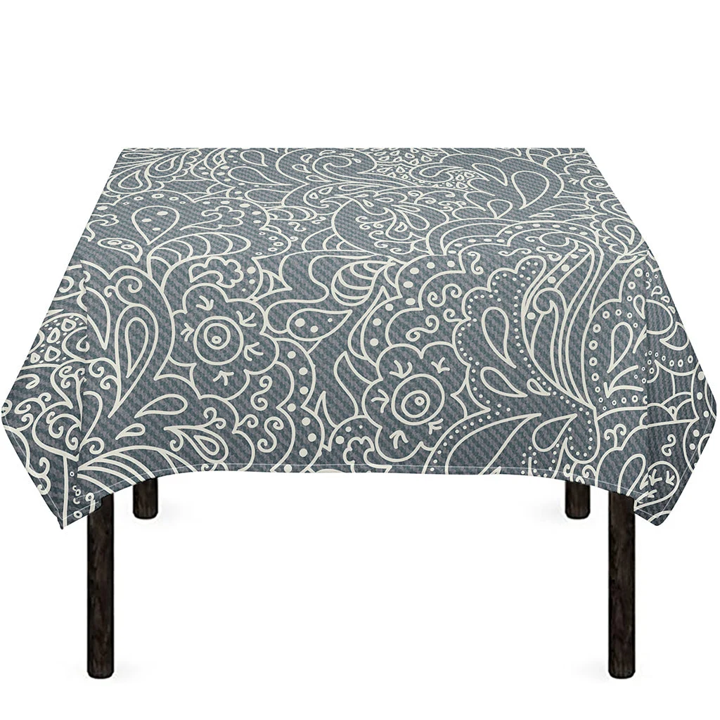 White And Grey Western Floral Print Tablecloth Kitchen Home Decor