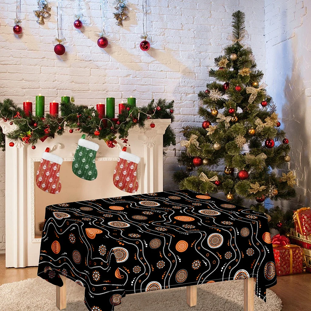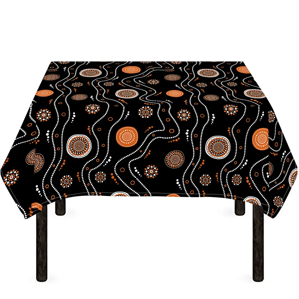 White And Orange Aboriginal Art Print Tablecloth Kitchen Home Decor