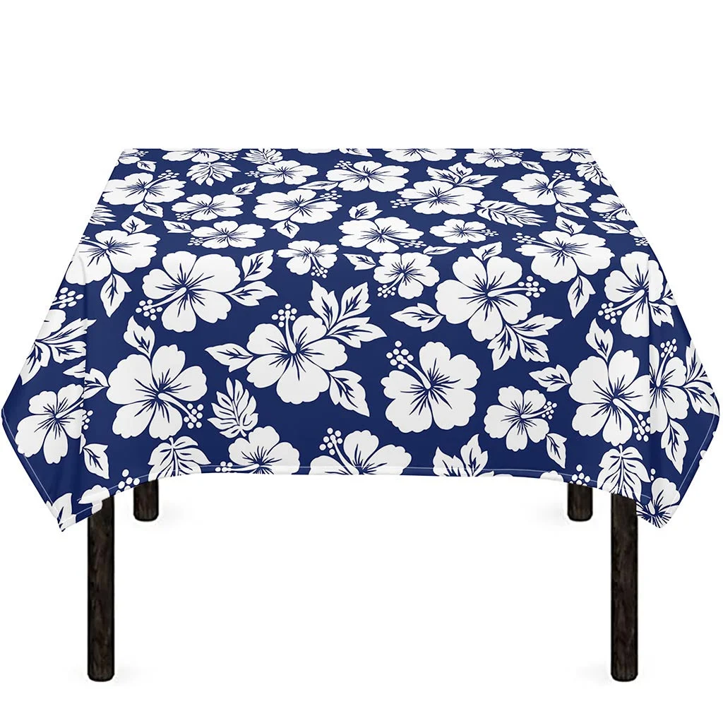 White Blue Hibiscus Floral Pattern Print Tablecloth Kitchen Decor Home Decor