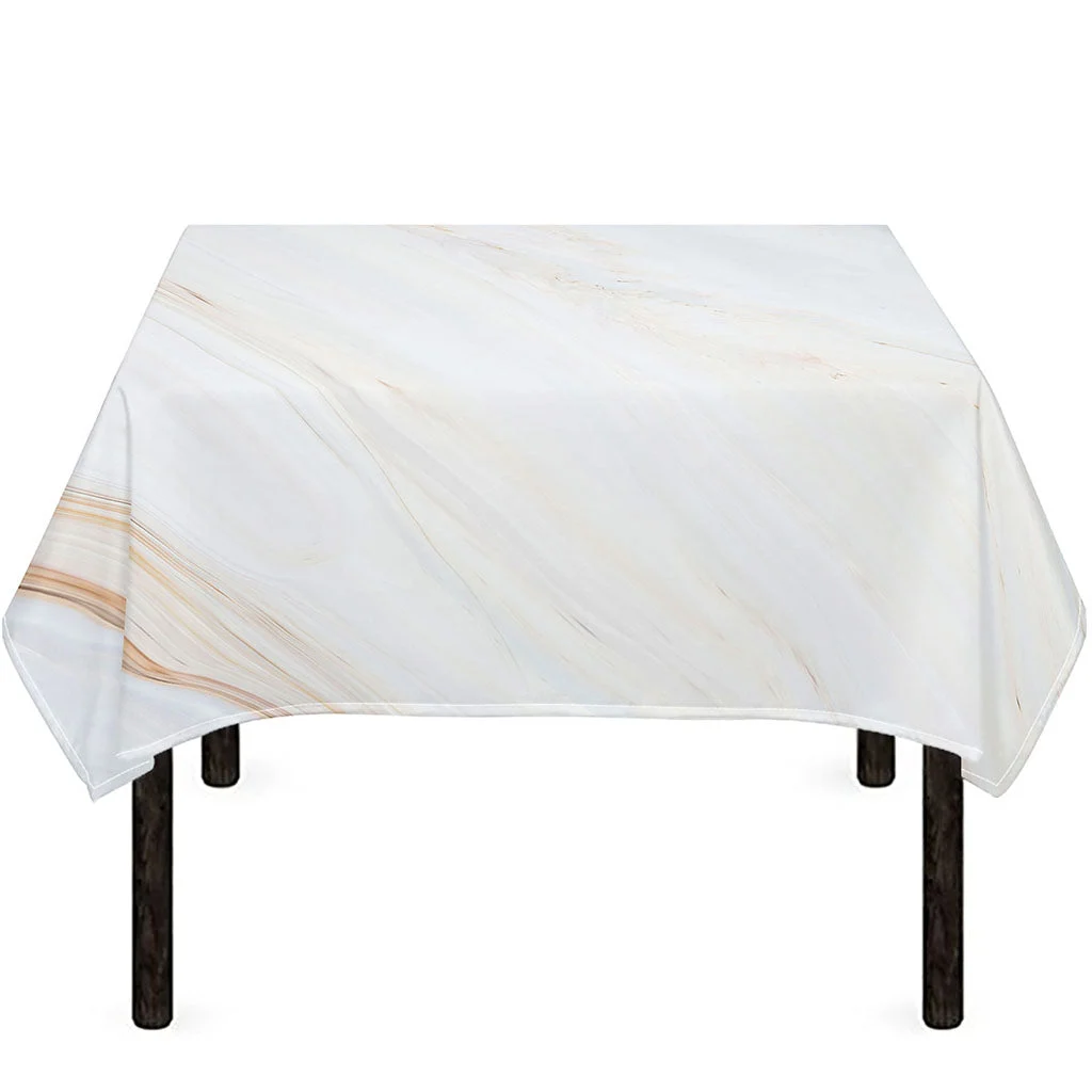 White Brown Smooth Marble Print Tablecloth Kitchen Decor Home Decor