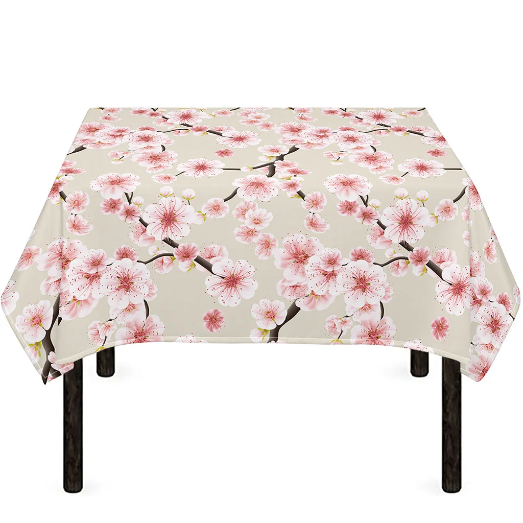 White Cherry Blossom Pattern Print Tablecloth Kitchen Decor Home Decor