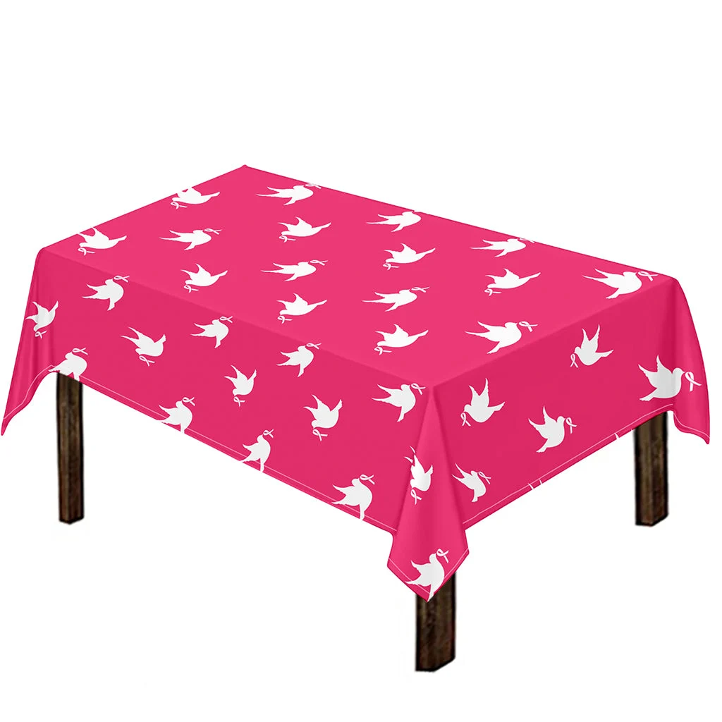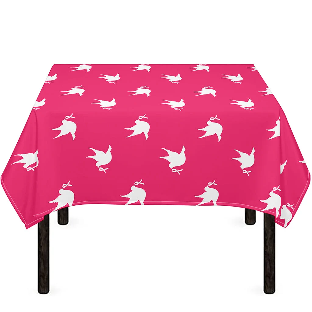 White Dove Breast Cancer Pattern Print Tablecloth Kitchen Decor Home Decor
