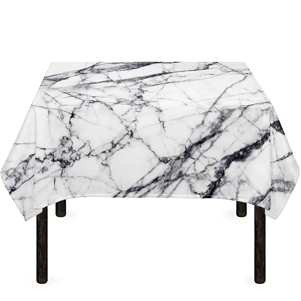 White Gray Scratch Marble Print Tablecloth Kitchen Decor Home Decor