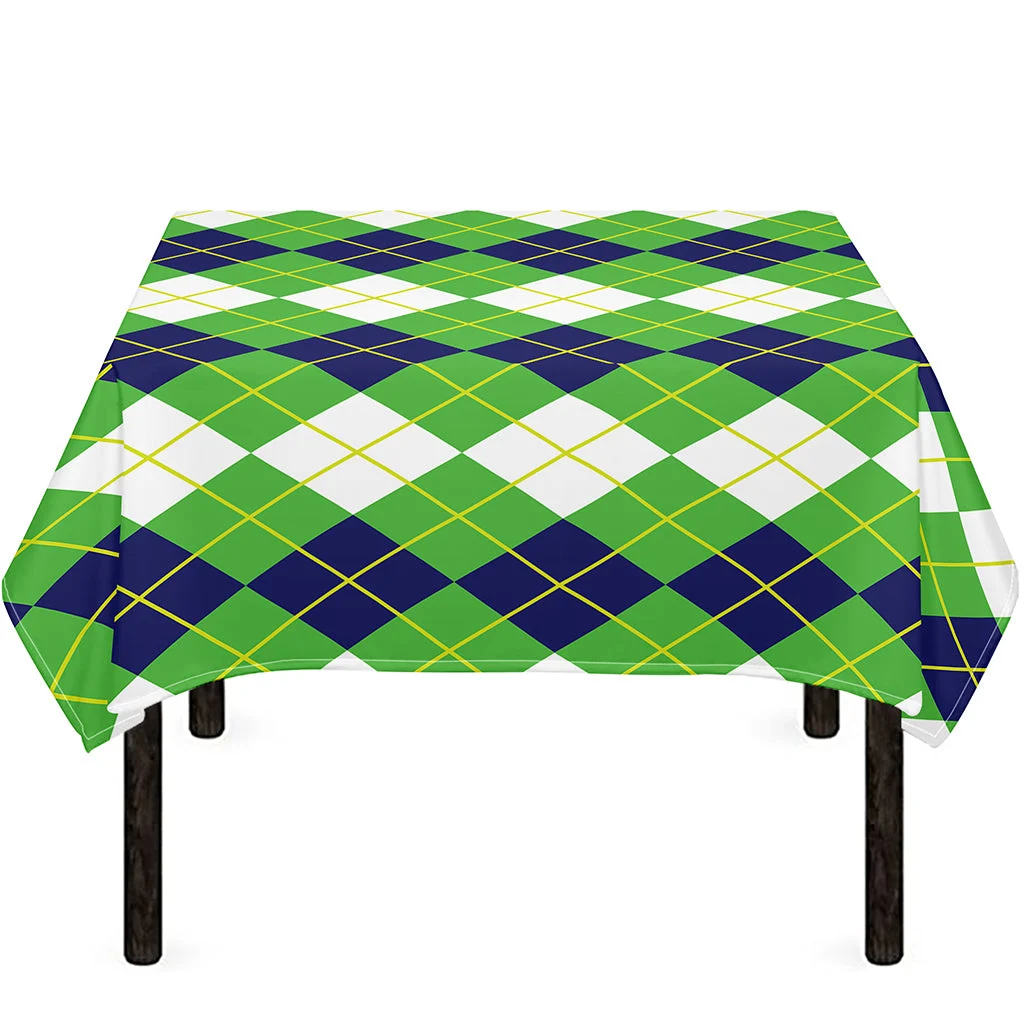 White Green And Navy Argyle Print Tablecloth Kitchen Decor Home Decor
