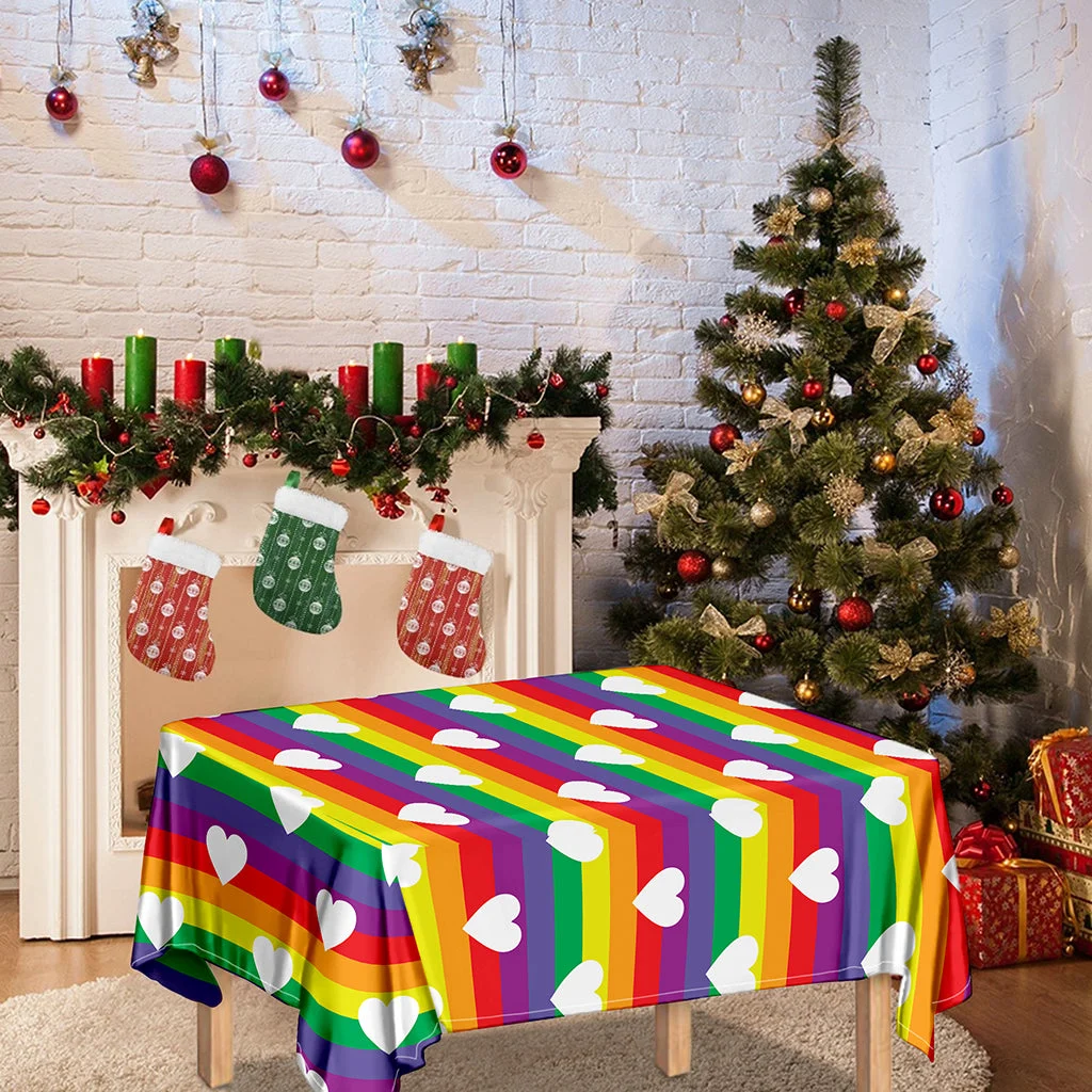 White Heart On LGBT Pride Striped Print Tablecloth Kitchen Decor Home Decor