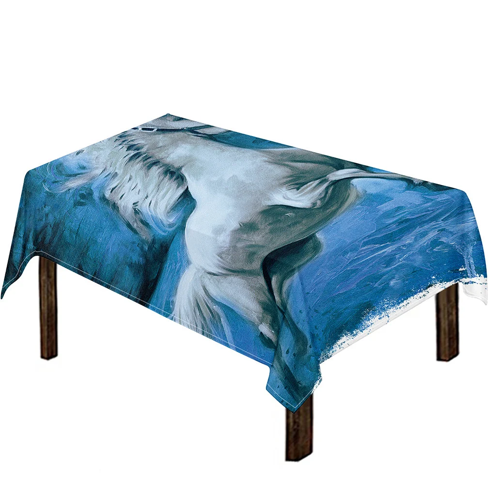 White Horse Painting Print Tablecloth Kitchen Decor Home Decor