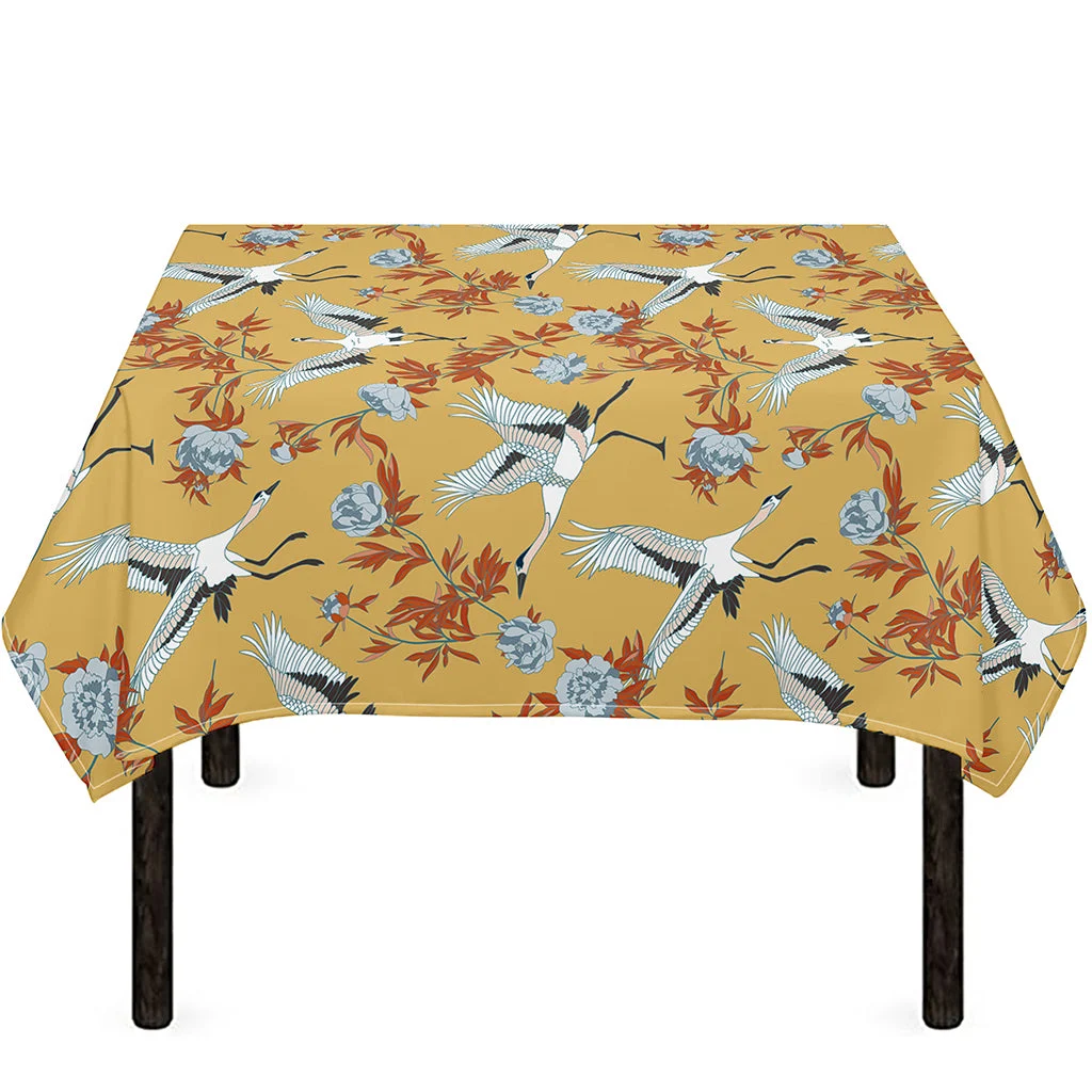 White Japanese Cranes Pattern Print Tablecloth Kitchen Decor Home Decor