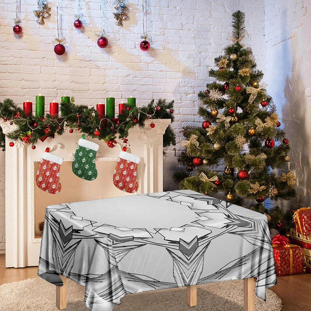 White Kaleidoscope Print Tablecloth Kitchen Decor Home Decor